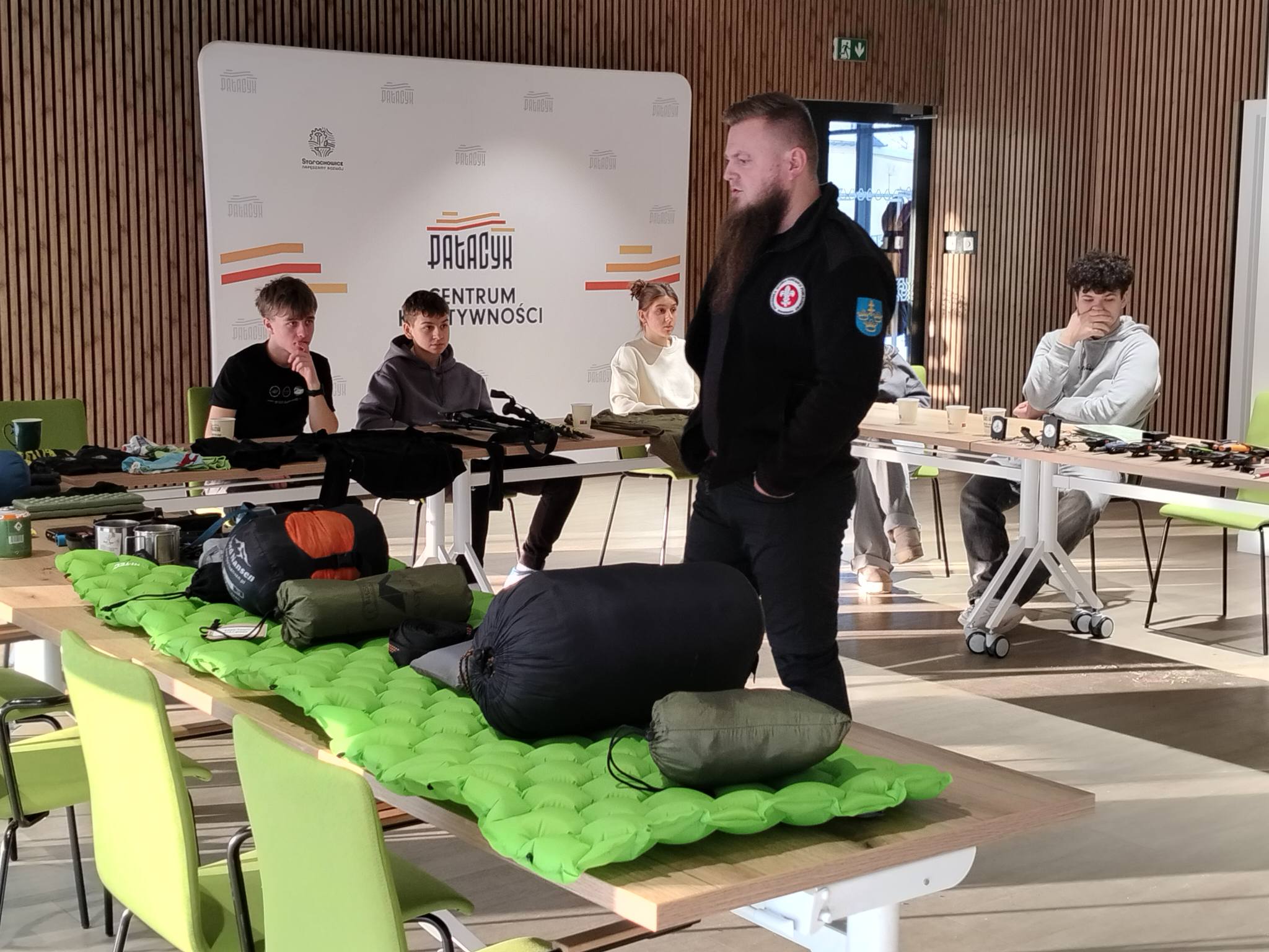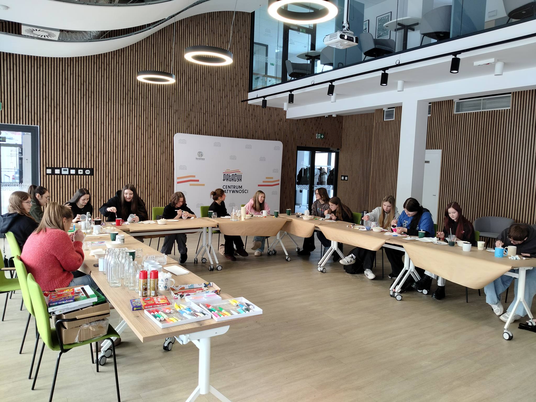 Pierwszy dzień ferii upłynął pod znakiem kreatywności i integracji. Podczas warsztatów upcyklingowych uczestnicy szyli aplikacje na torbach z materiałów z odzysku, poznając ideę ponownego wykorzystania surowców. Zajęcia poprowadziła Janina Malinowska. Tego dnia odbył się również teleturniej „The Floor”, prowadzony przez Michała Matyska, który dostarczył wielu emocji, a miniwarsztaty fotografii mobilnej pozwoliły młodzieży rozwinąć kreatywne spojrzenie na otaczający świat.