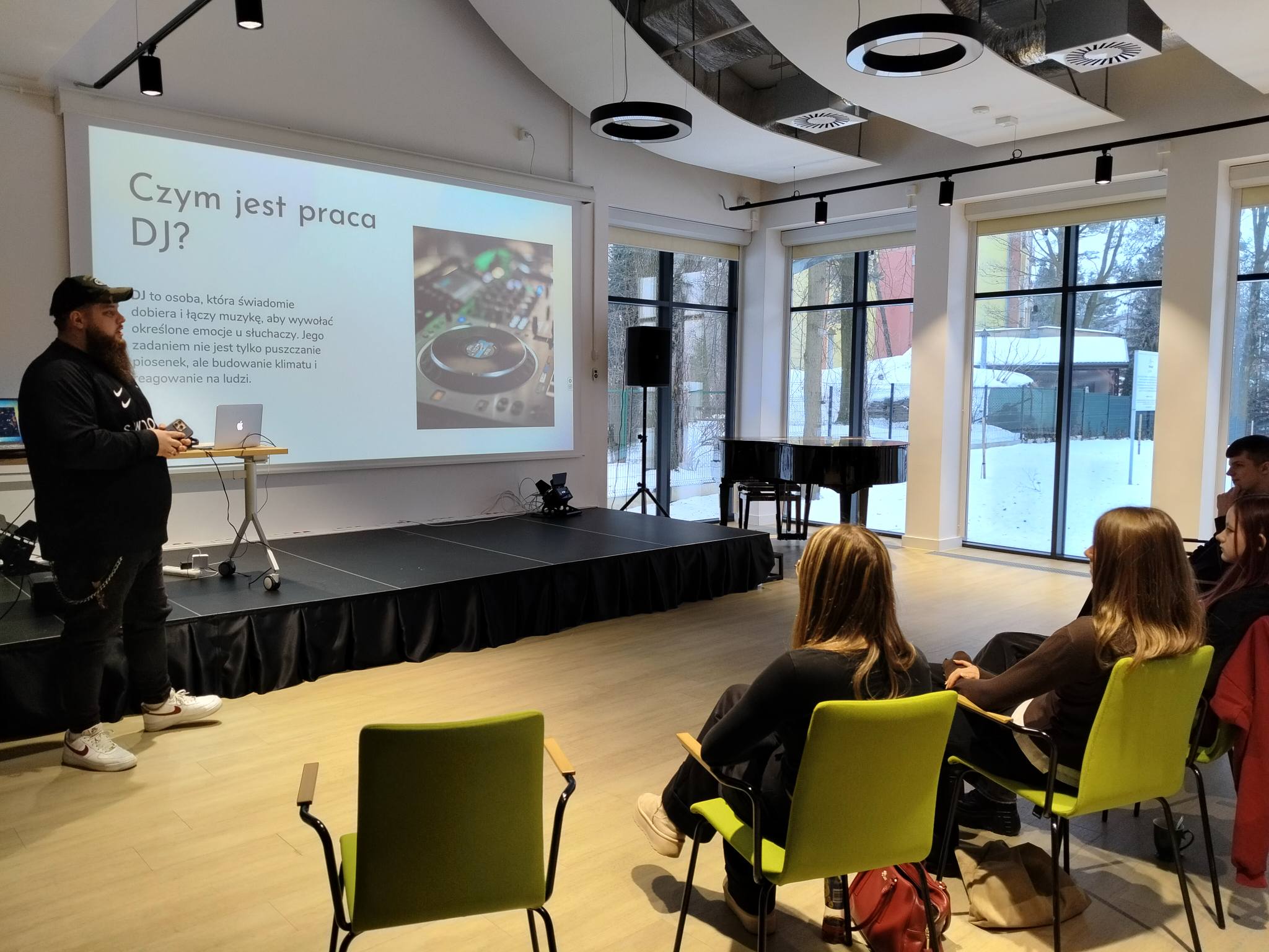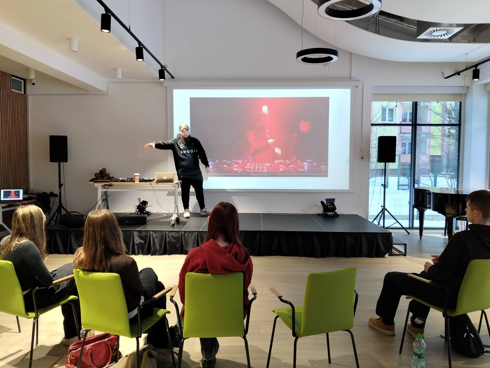 Ostatni, piąty dzień ferii był Dniem Muzyki i jednocześnie ich energetycznym finałem. Warsztaty DJ-skie poprowadził Patryk Wójcik – DJ SZELEST, wprowadzając uczestników w świat miksowania muzyki, pracy z dźwiękiem i budowania klimatu. Uzupełnieniem były karaoke oraz showcase, podczas których młodzież mogła zaprezentować się na scenie i spróbować swoich sił w występach muzycznych. Był to dzień pełen autentyczności, odwagi i muzycznych odkryć, stanowiący idealne zakończenie ferii 2026 w Pałacyku.