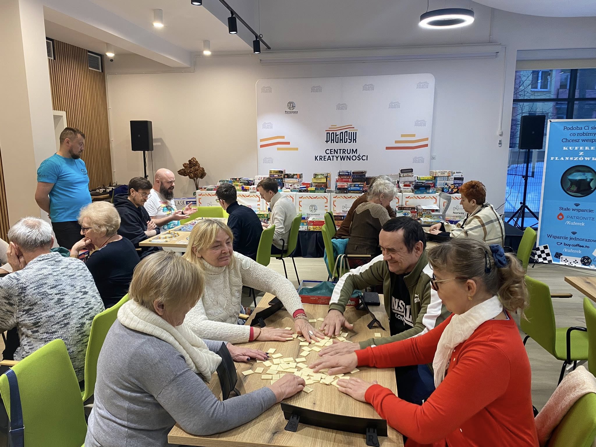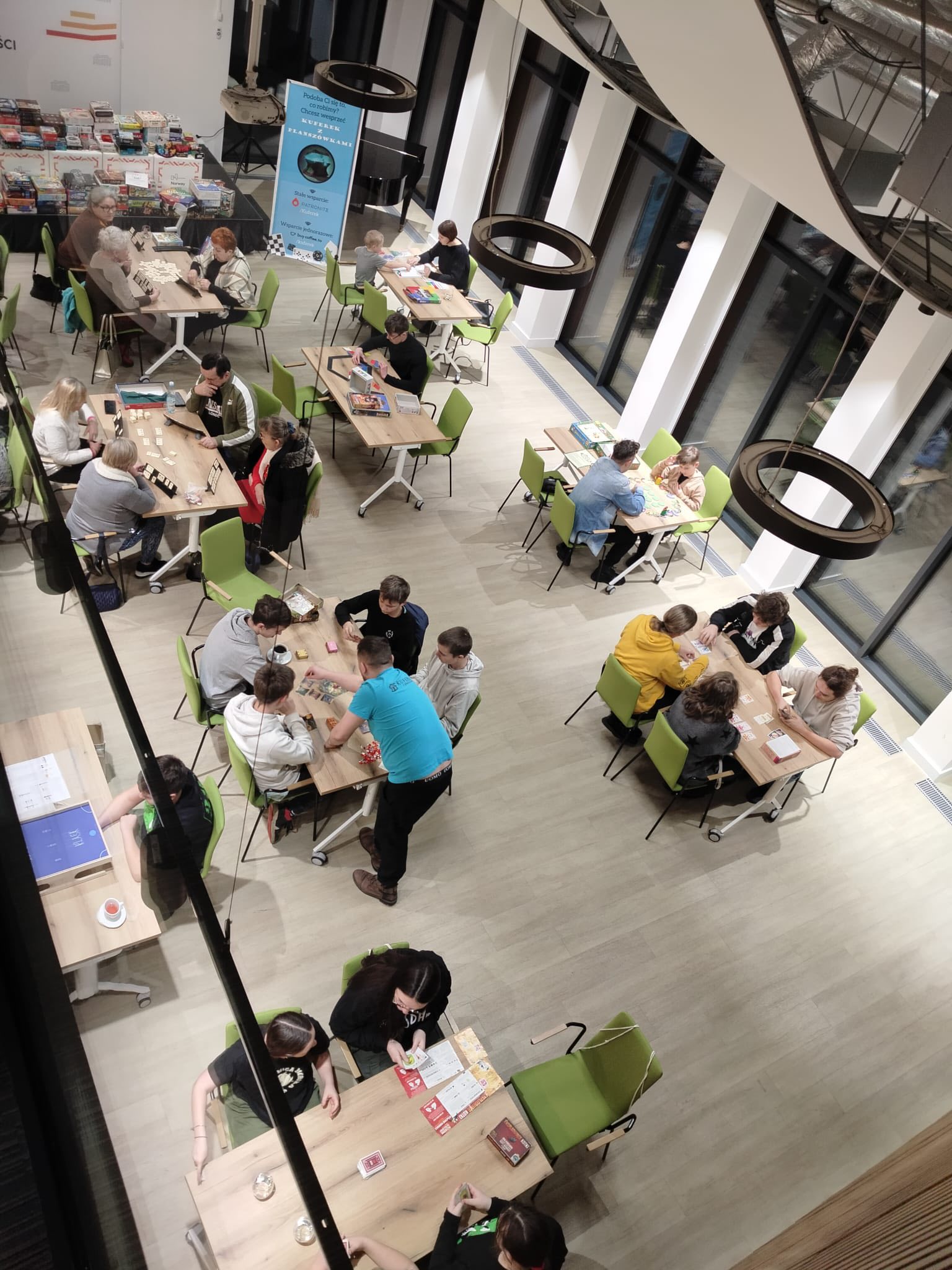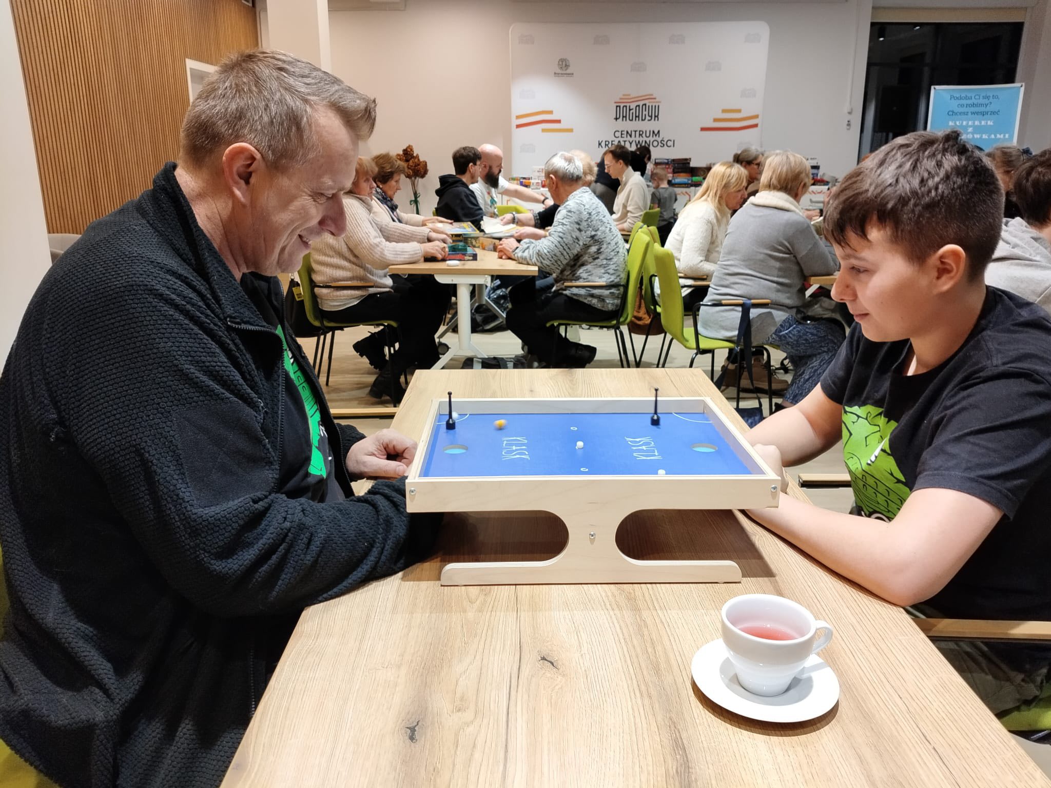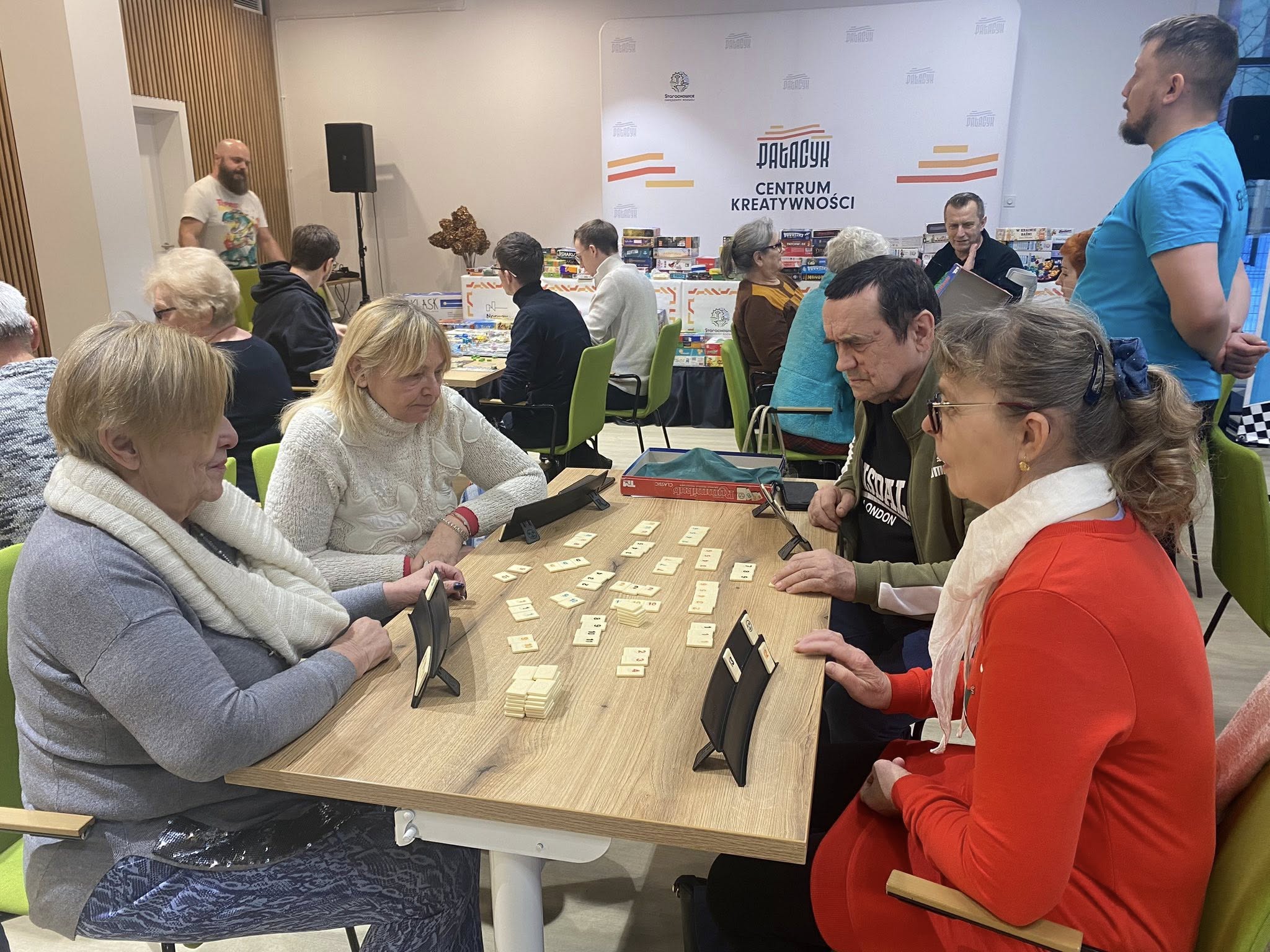 Atmosfera sprzyjała integracji, zdrowej rywalizacji i wspólnej zabawie. Instruktorzy z Kuferka z planszówkami pomagali w wyborze gier i tłumaczyli zasady, dzięki czemu każdy mógł szybko dołączyć do rozgrywki. Stoły przez cały czas były pełne graczy, a kolejne partie przynosiły wiele radości i emocjonujących momentów.