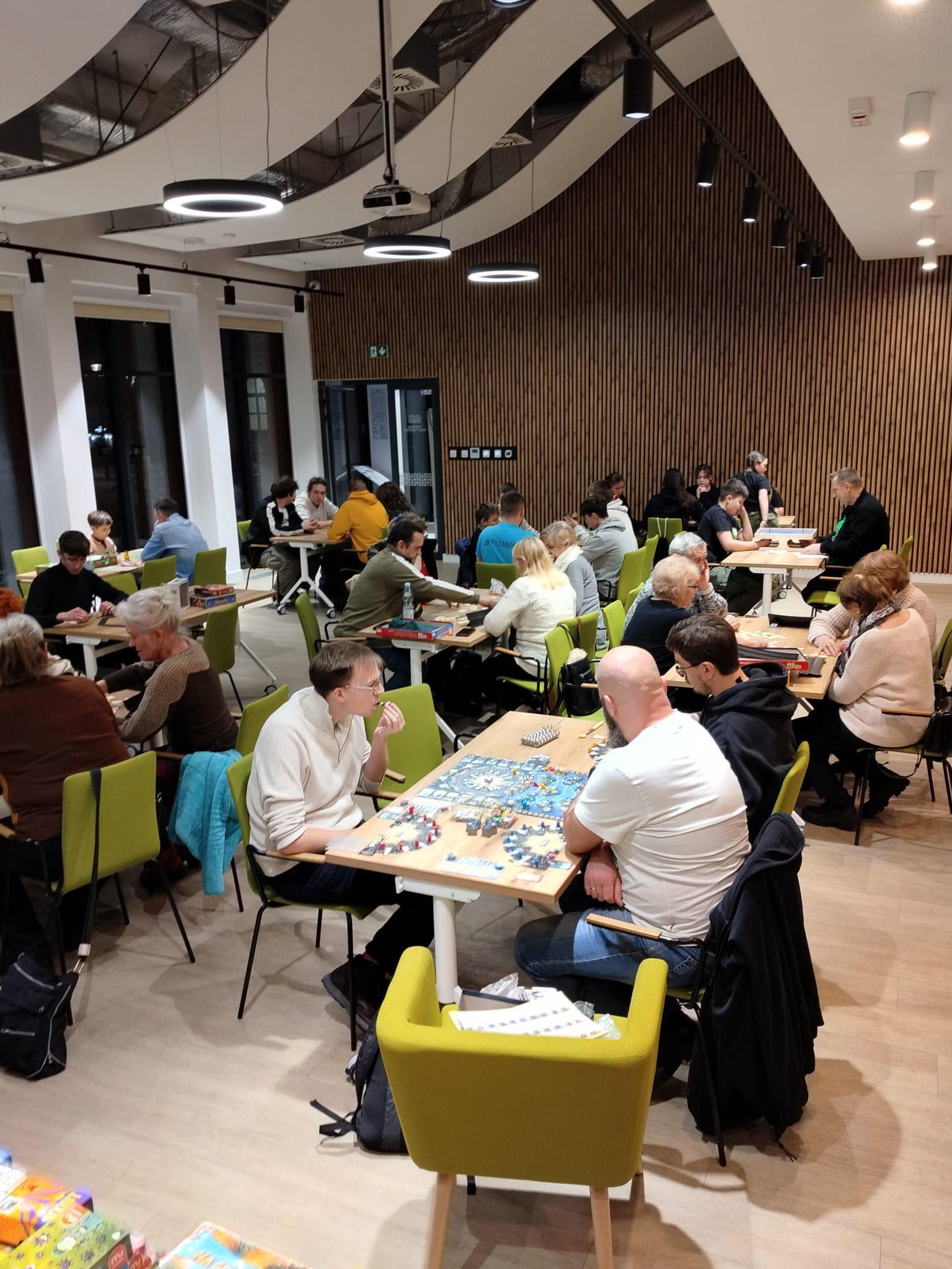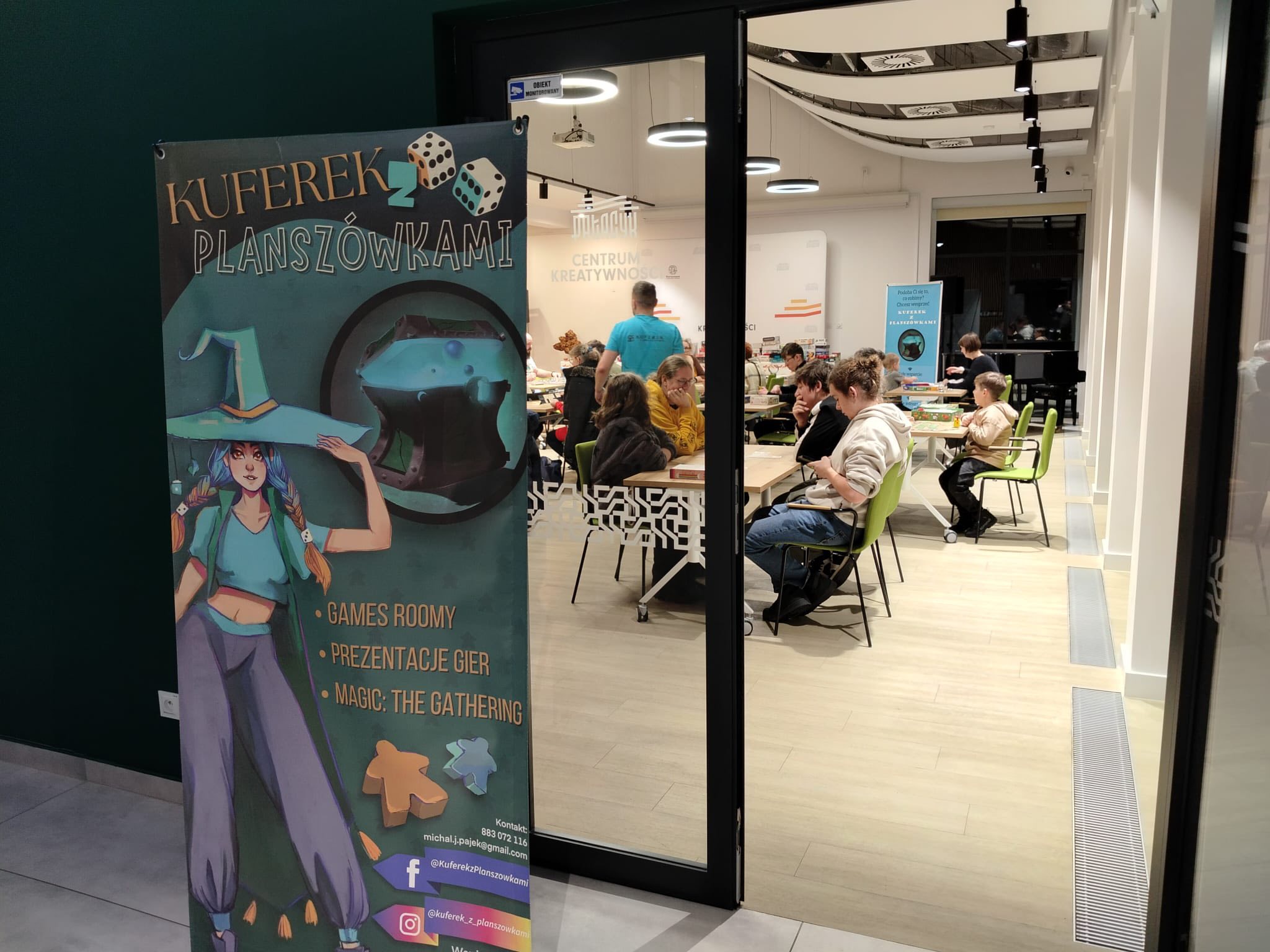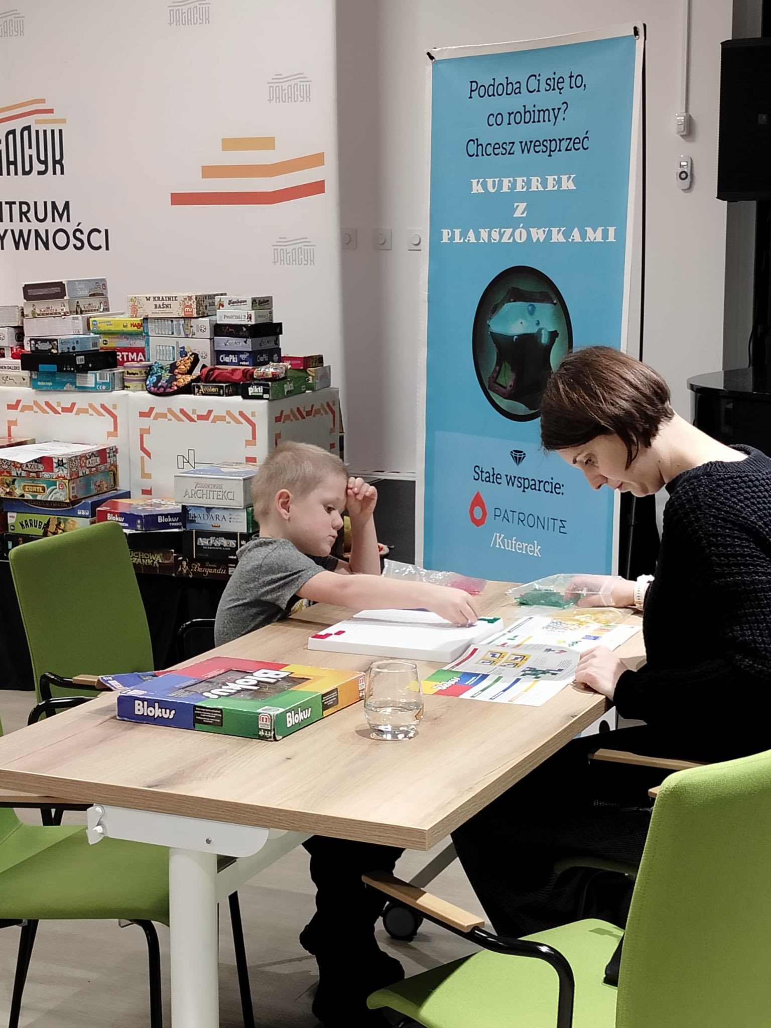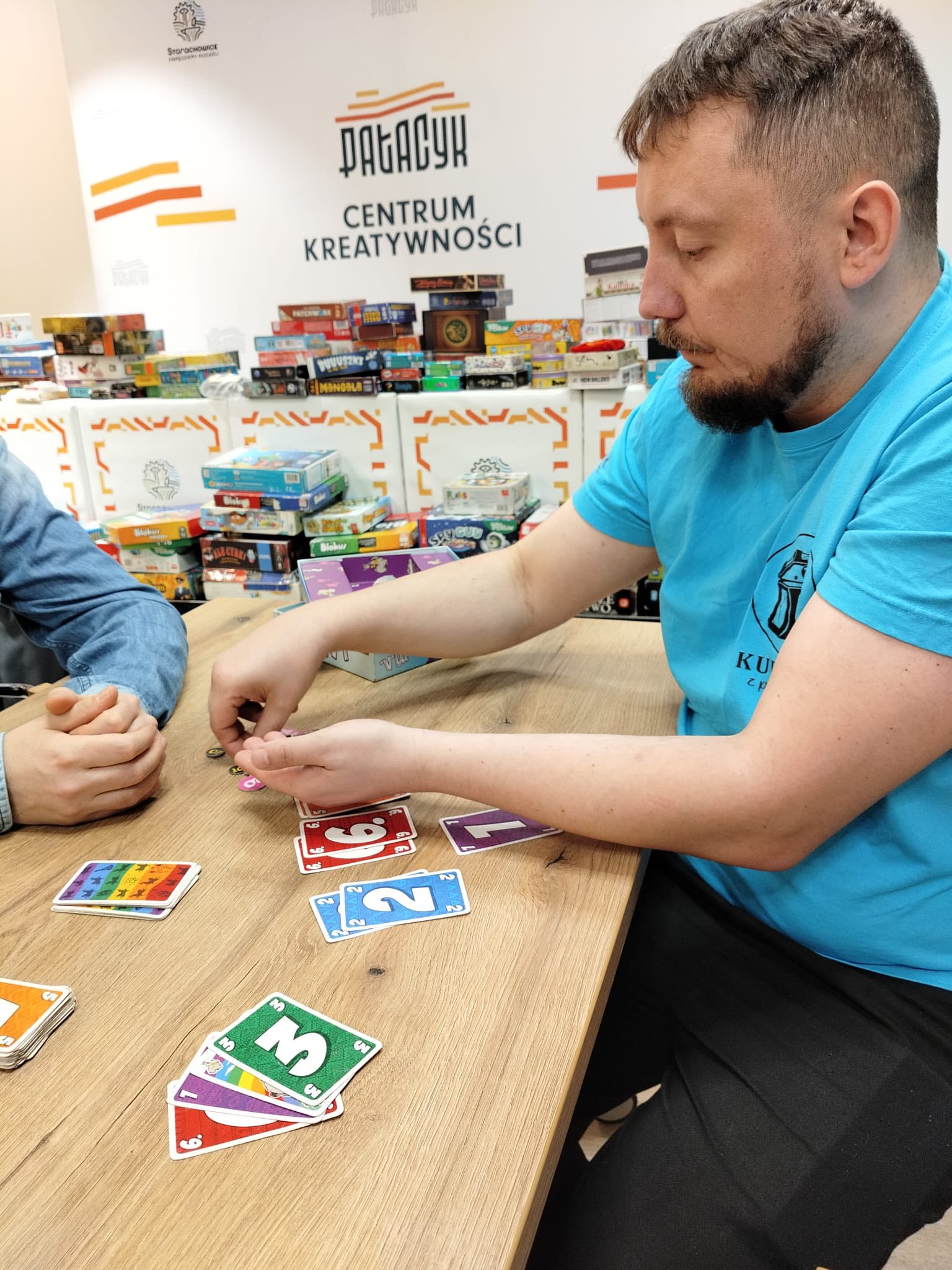 Atmosfera sprzyjała integracji, zdrowej rywalizacji i wspólnej zabawie. Instruktorzy z Kuferka z planszówkami pomagali w wyborze gier i tłumaczyli zasady, dzięki czemu każdy mógł szybko dołączyć do rozgrywki. Stoły przez cały czas były pełne graczy, a kolejne partie przynosiły wiele radości i emocjonujących momentów.