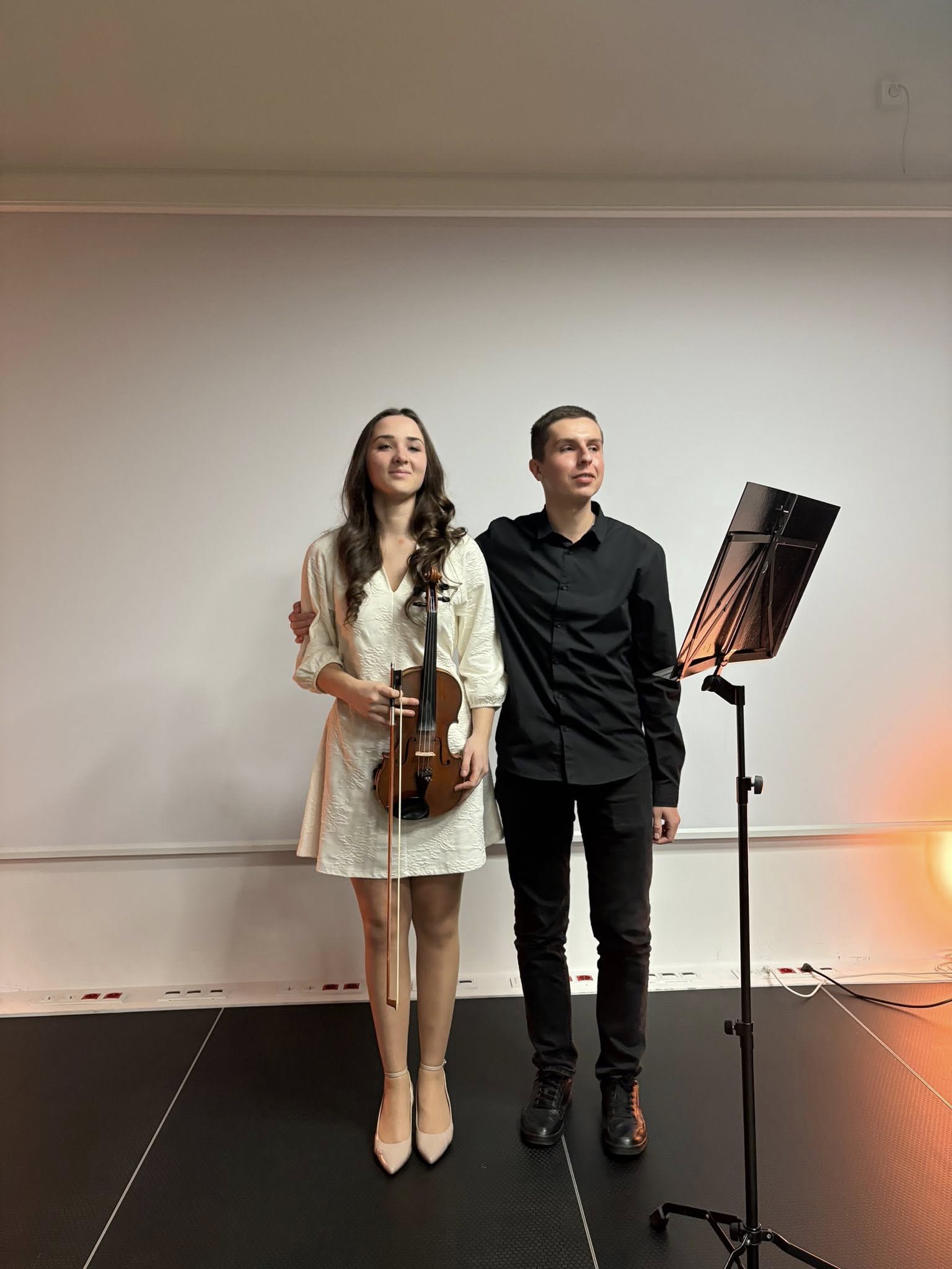 Całości spotkania dopełniła muzyka na żywo, grana przez duet: Oliwię Biniek - skrzypce, Antoniego Jamkę - fortepian.